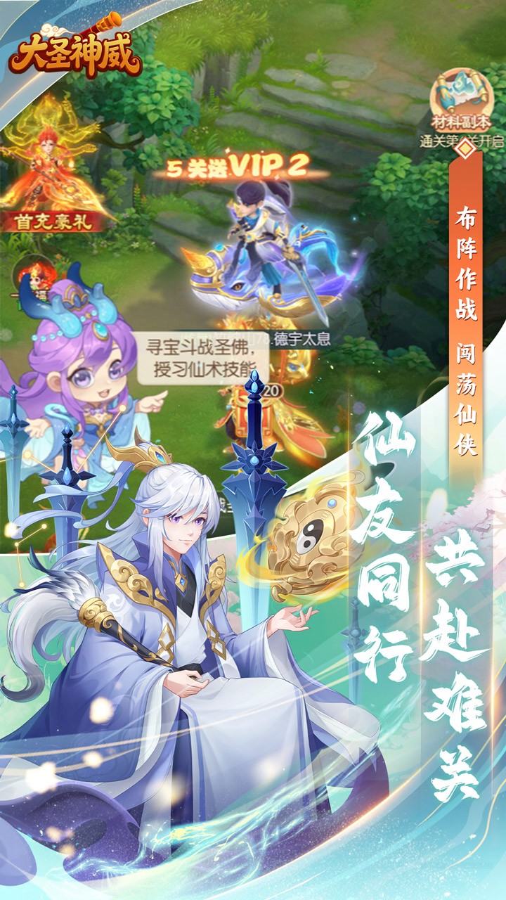 Q版放置回合仙侠,游戏主打宠物伙伴系统、不同的阵容搭配,可以让玩家体验不同的策略感觉。
